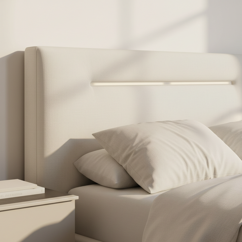 Cabecero tapizado que llega listo para instalar, sin complicaciones. Diseño acolchado con luz LED integrada controlada por interruptor táctil en el centro, perfecta para crear ambiente en tu dormitorio. La iluminación está centrada y estandarizada a 102cm, compatible con todos los tamaños. Disponible en anchos de 105 a 200cm, con 120cm de altura y 8cm de profundidad. Monta tu espacio de descanso en minutos y disfruta del toque de luz que transforma tu habitación.