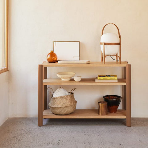 Coloca los objetos más pesados en las baldas inferiores, distribuyendo el peso de manera equilibrada. A pesar de la robustez de la madera de roble, esta práctica extenderá la vida útil de tu mueble y prevendrá deformaciones en las baldas con el paso del tiempo.