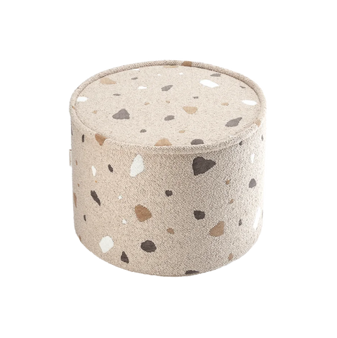 Puf Asiento Redondo de Bouclé & Chenilla Terrazo Beige