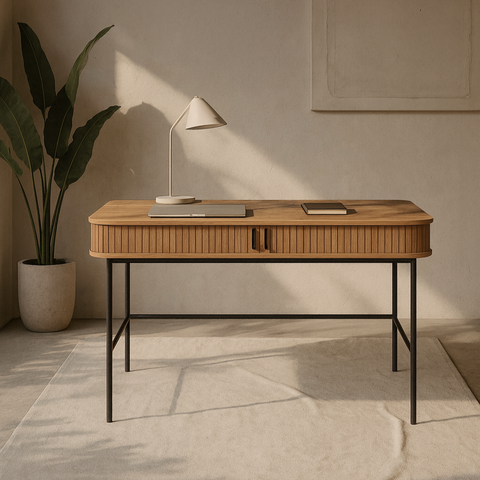 Descubre el escritorio Cornell, donde la elegancia del roble natural se une con la modernidad de sus patas negras mate. Perfecto para espacios que buscan estilo y funcionalidad sin complicaciones, su diseño minimalista y su práctico cajón con correderas te harán sonreír cada vez que te sientes a trabajar o crear. Añade un toque sofisticado y resistente a tu rincón favorito con este escritorio que sabe combinar nobleza y durabilidad de manera divertida y única. ¡Haz que cada día sea más productivo con Cornell!
