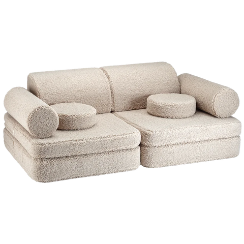 - Sofá infantil suave y acogedor en tono galleta